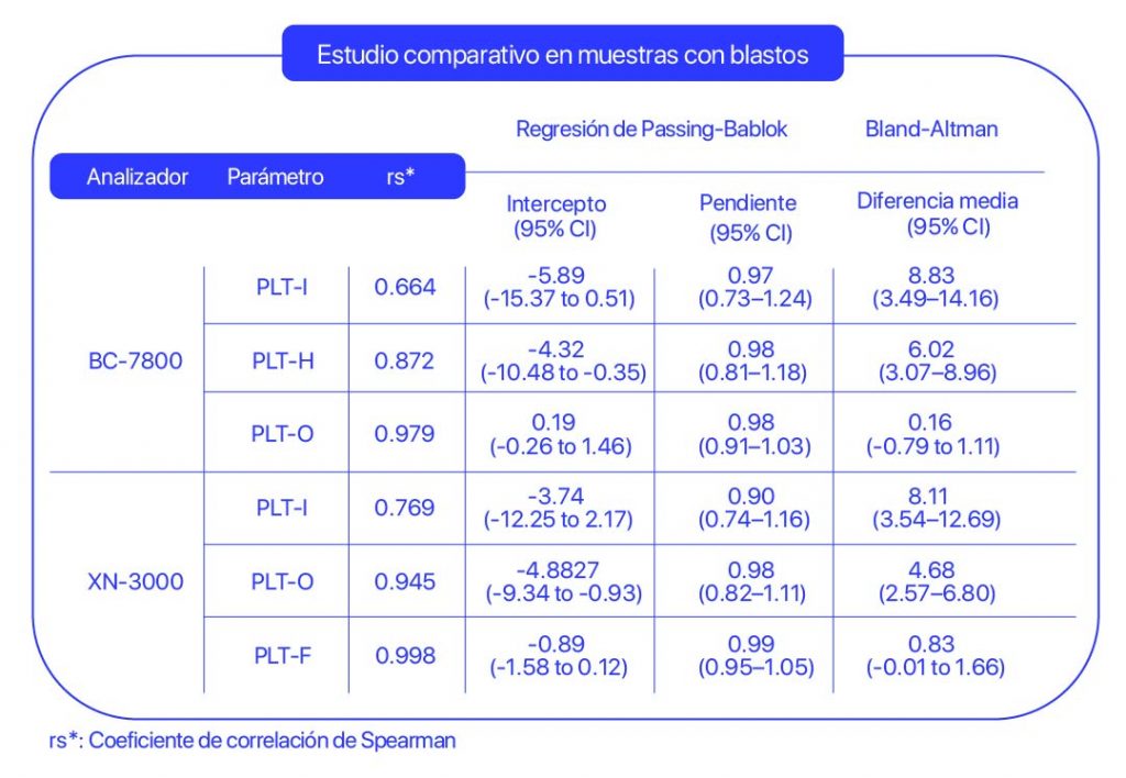 • En muestras con leucemia aguda, el método PLT-O y PLT-F presentaron la mejor correlación con la Citometría de Flujo.