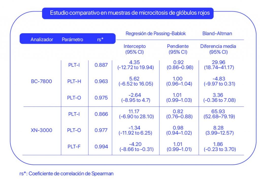 • En microcitosis, los métodos PLT-H, PLT-O y PLT-F mostraron resultados comparables al método de referencia, con alta concordancia y precisión.