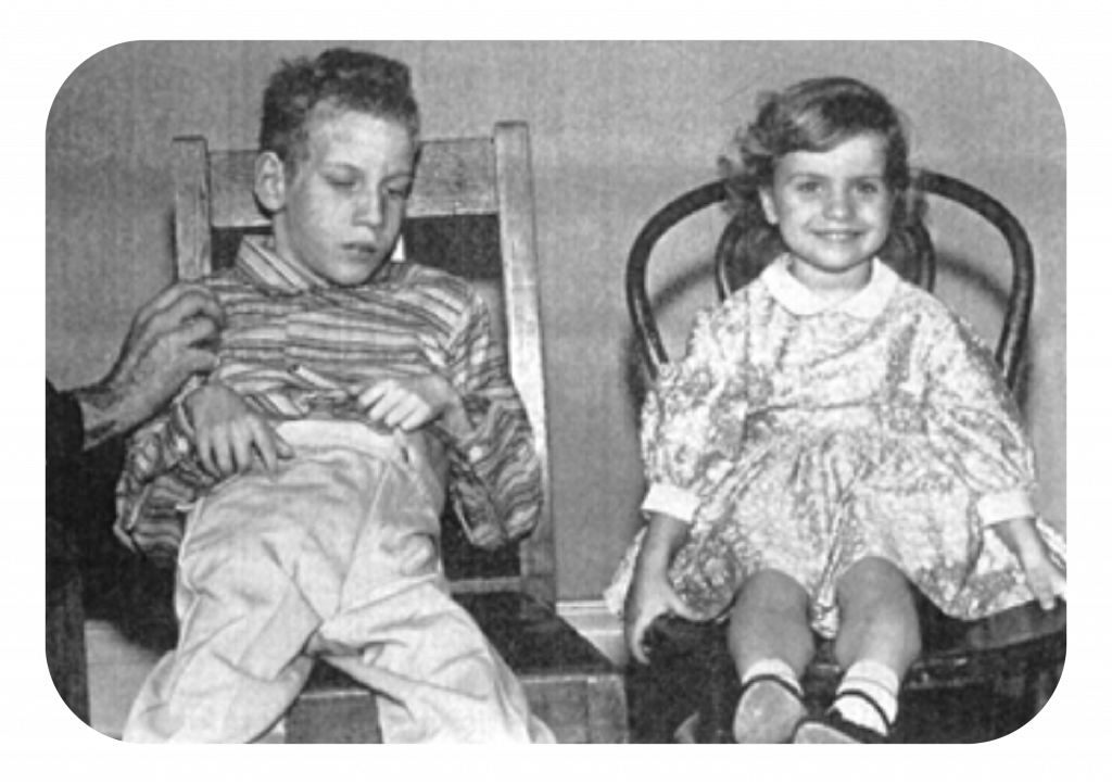 Figura 5. Dos hermanos afectos de PKU. El hermano mayor, de 11 años, fue tratado tardíamente y está afecto de un retraso mental severo, mientras que su hermana de 2 años y medio fue tratada desde los primeros meses de vida y presenta un desarrollo neurológico normal.