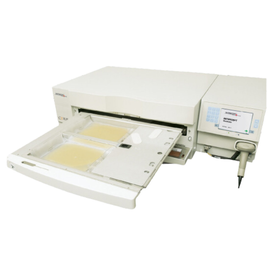 El iluminador conserva registros de los hemoderivados y los procesa y transfiere a una impresora o un ordenador.